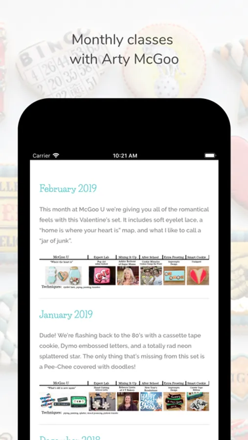 The Arty McGoo app showcases monthly cookie decorating instructional videos with homework for our community. As part of the McGoo U for University the app will allow our community to connect with others, share stories, videos and pictures of your delicious creations.