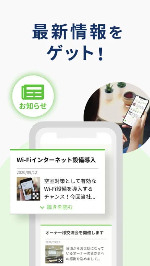 管理会社からのお知らせを見ることができます。