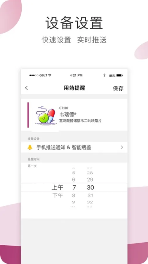 瓶盖提醒:帮助乙肝患者准时地服用药物,从而保证得到正确的治疗。