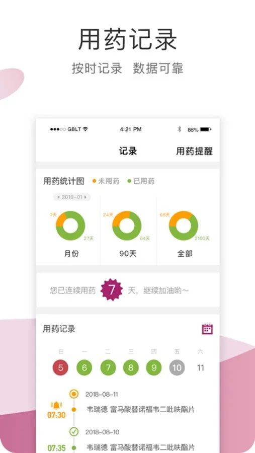 瓶盖记录:相关电子装置可记录病人的使用情况,形成用药记录;乙肝患者同样可以手工记录日常的症状,帮助形成相应的记录。这些记录帮助实时的了解乙肝患者的使用情况,并给予相应的指导。