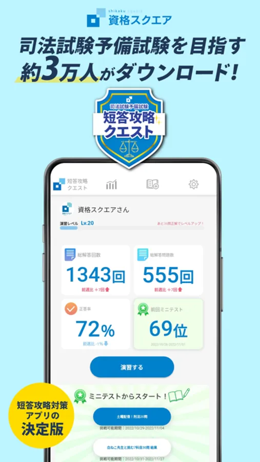司法試験・予備試験の短答対策の決定版、資格スクエアの短答演習アプリが、弁護士や上位合格者などの監修によって大幅アップデート!