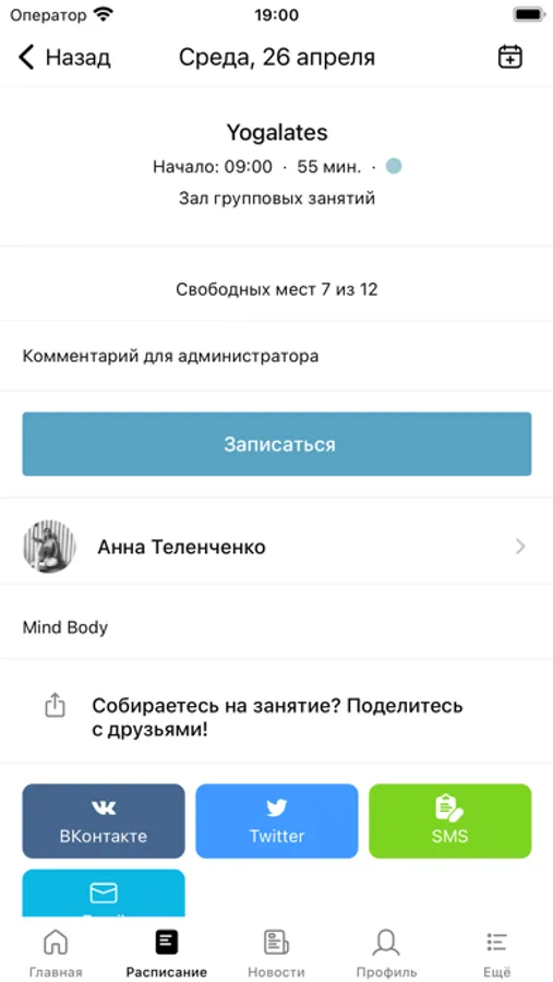 С помощью приложения вы можете следить за расписанием клуба, записываться на тренировки, оперативно получать информацию об изменениях в расписании и специальных предложениях.