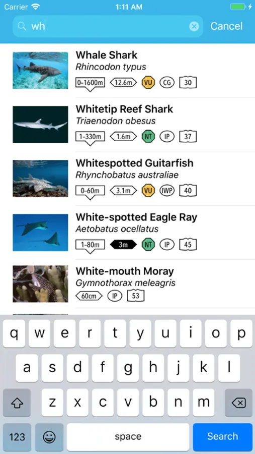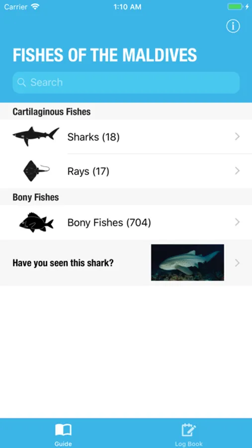 - Detailed species information of Sharks (18), Rays (17) and Bony Fishes (704).