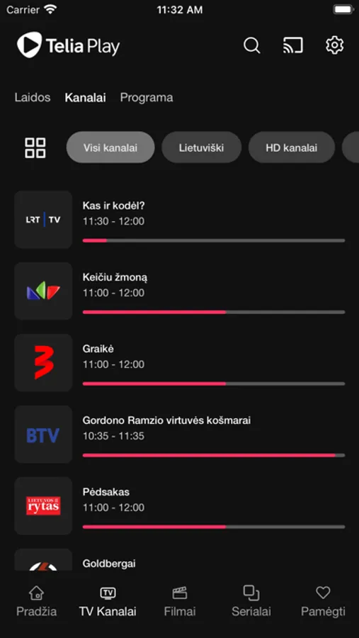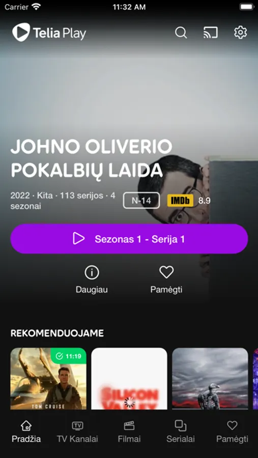 • Daugiau nei 60 TV kanalų su iki 14-os dienų įrašais, kurių didžioji dalis HD raiška