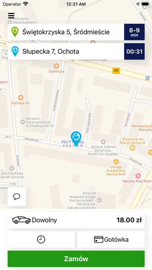 Application for ordering a taxi in Tanie Taxi Company. Located in Warsaw, Poland.