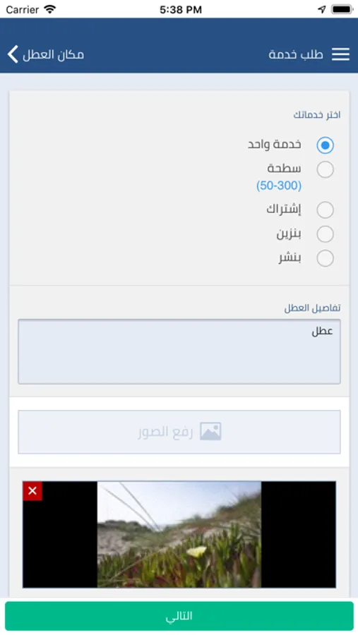 • إمكانية اختيار نوع الخدمة التي تحتاجها من الخيارات الموجودة بالتطبيق لتقديم المساعدة