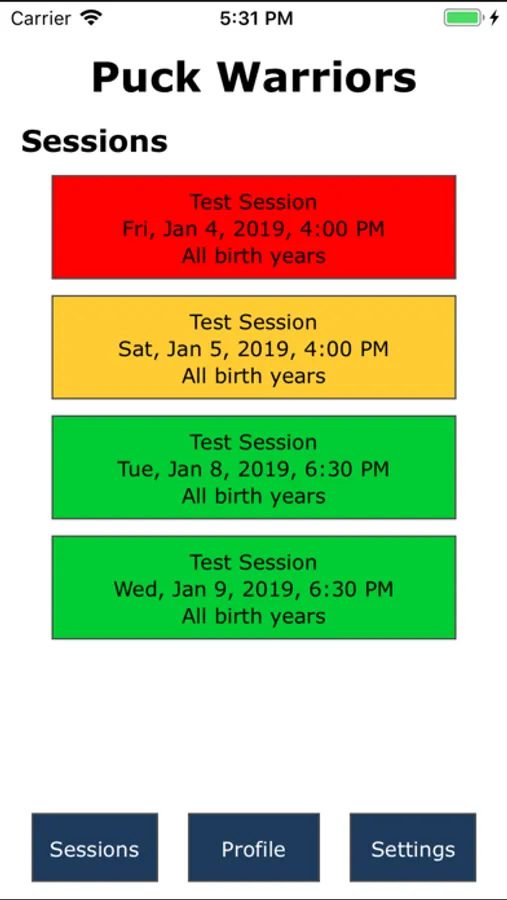 The Puck Warriors app gives you exclusive access to book your Puck Warriors Goaltending sessions. It is now easier than ever--just download and install the app, create your account and tap on the sessions for which you'd like to book and reserve your spot. The app can even add an event to your calendar. Cancelling a session is just as easy and follows the same process. Yellow sessions on the session page are ones you have reserved, green ones are available and red ones are fully booked.