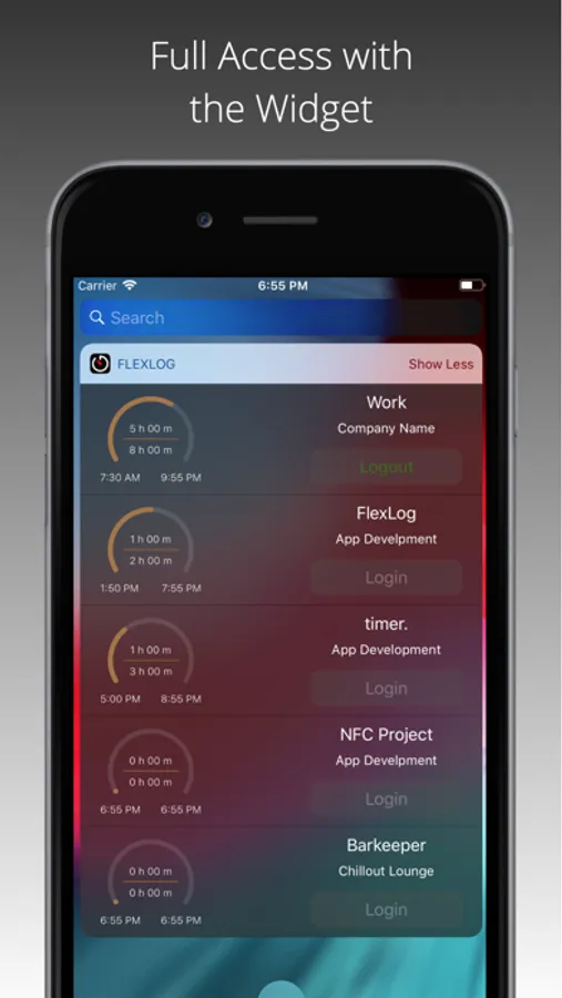 - Login / Logout via NFC Tags (NFC Tags are required - only iPhone 7 or newer supports third party NFC, this is a limitation by Apple)