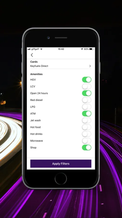 Keyfuels Sites uses the location capabilities of the iPhone to determine the current location and then download the nearest sites. Once downloaded, these sites can be displayed on a map and listed in ascending order of distance from the current location.