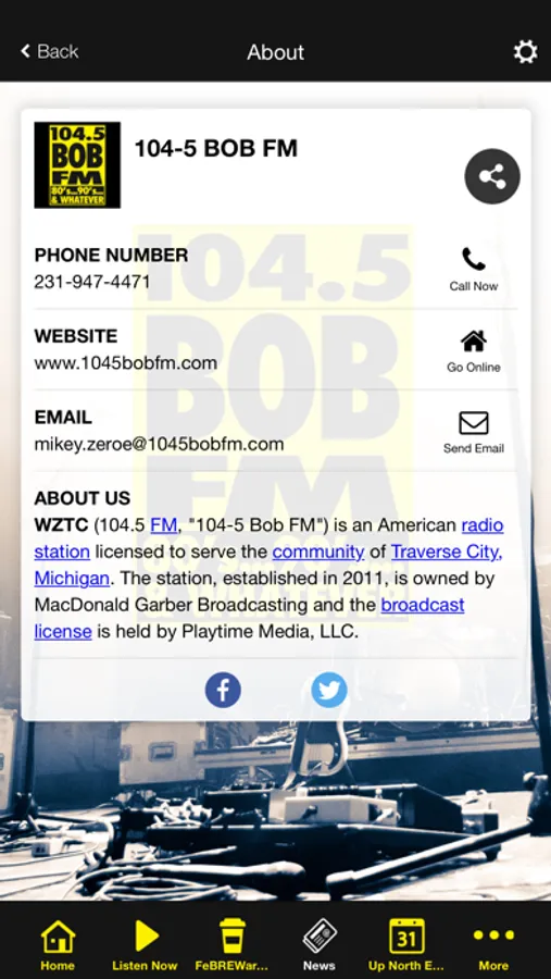 WZTC (104.5 FM, "104-5 Bob FM") is an American radio station licensed to serve the community of Traverse City, Michigan. The station, established in 2011, is owned by MacDonald Garber Broadcasting and the broadcast license is held by Playtime Media, LLC.