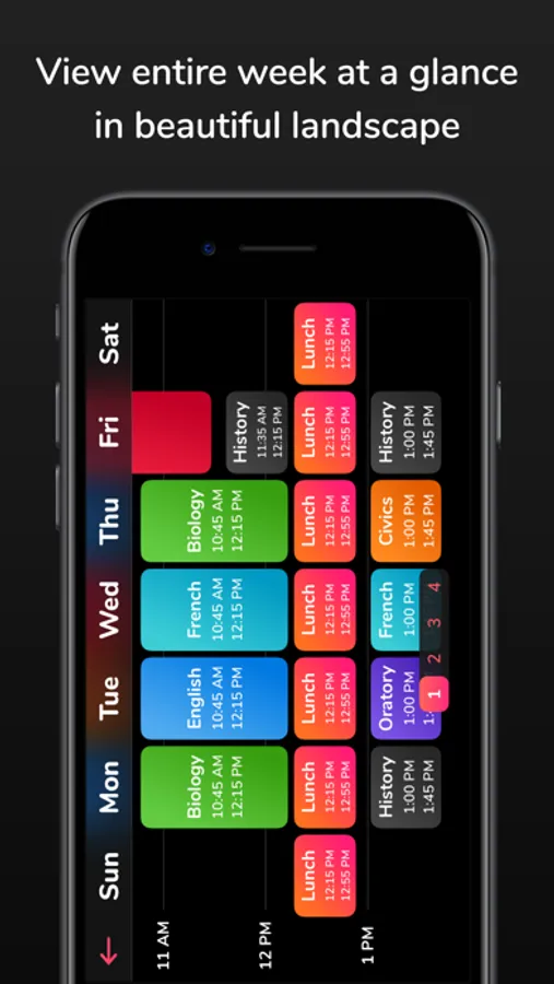 - Beautiful landscape view of the entire week at once (Just tap the fullscreen landscape button on top)