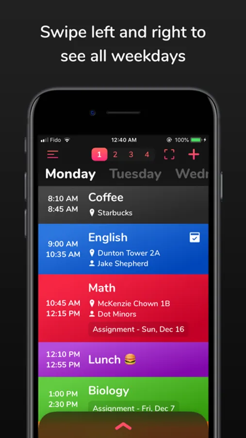 School Timetable is the most easy to use, yet versatile scheduling app for students of school, college or university. Easily keep track of your weekly school schedule and events like homework assignments, exams and quizzes in this beautiful tracker accompanied by an Apple Watch app. Check out the following features which makes School Timetable the most complete schedule organizer app for students: