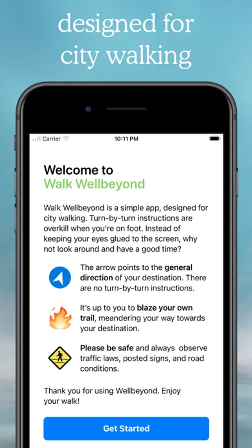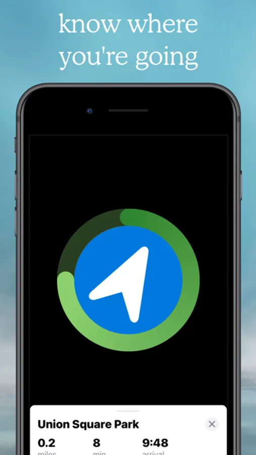 You only see your destination’s direction and distance. That's all you need to get there, so you can look around and enjoy your walk.