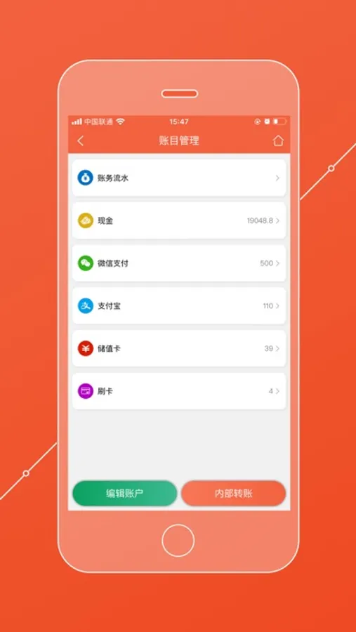 账务明细,分类明细,支付管理,内部转账...