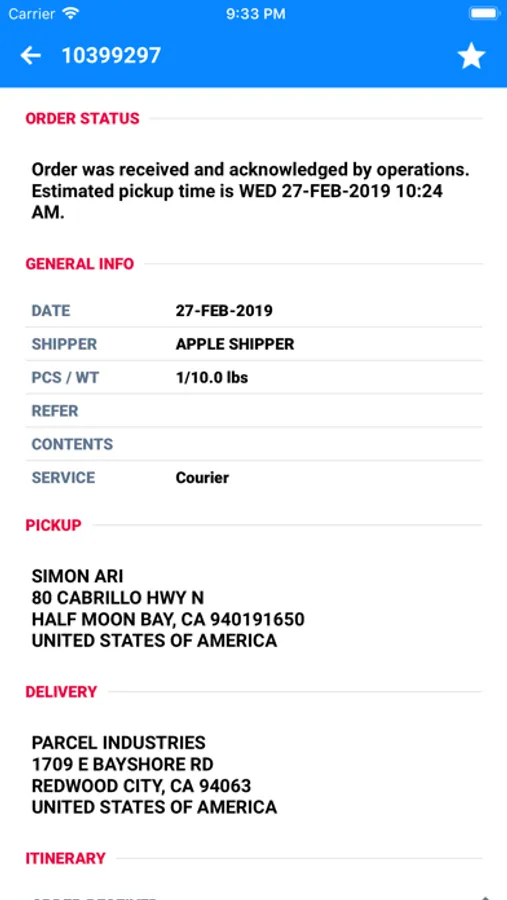 As a Shipper, you have direct access to all of your shipment's information including real-time Status, up-to-date Operations notes, and a complete itinerary/progress of the shipping milestones.