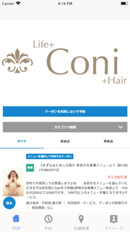 お得なクーポンが配信されます。ネット予約時にクーポン利用での予約も可能なので来店時もスムーズに施術頂けます。