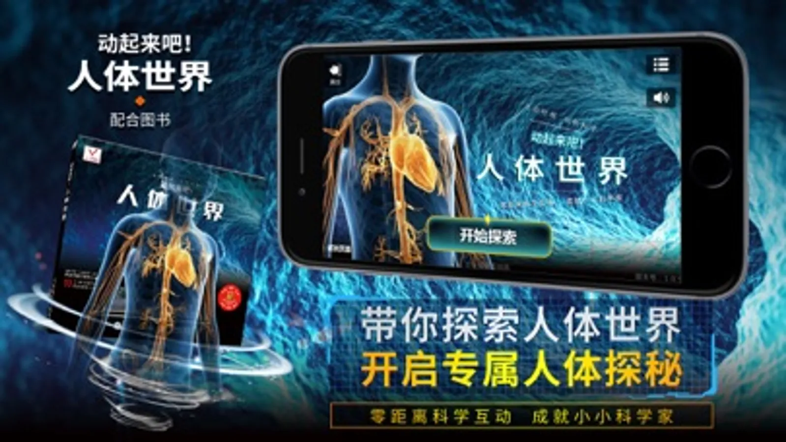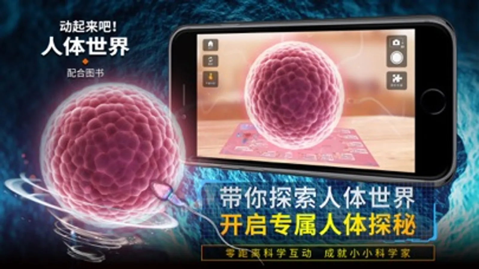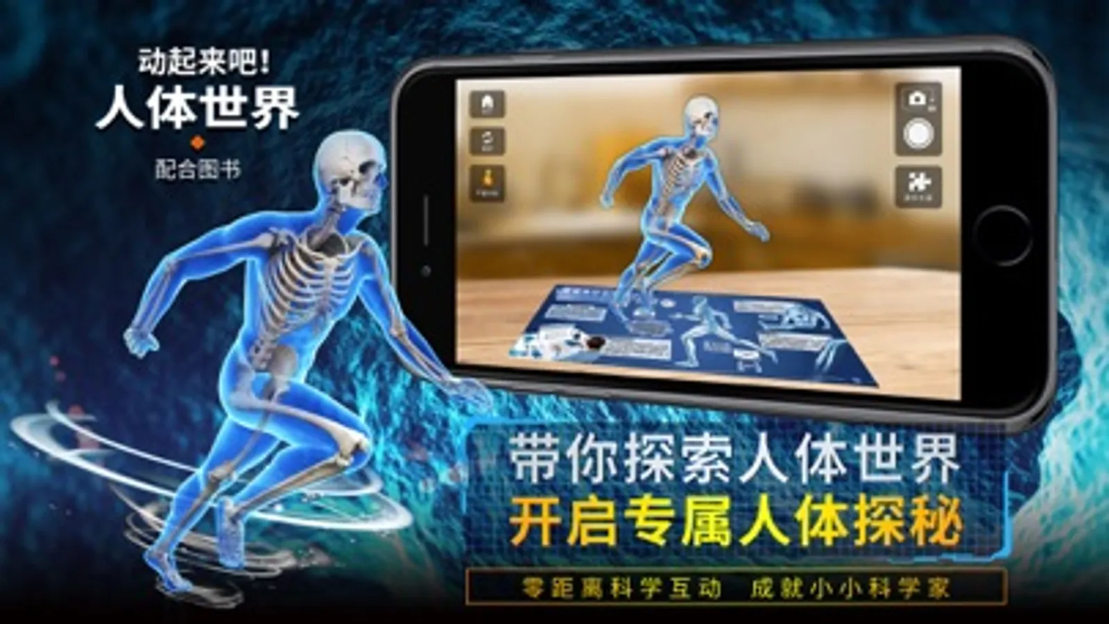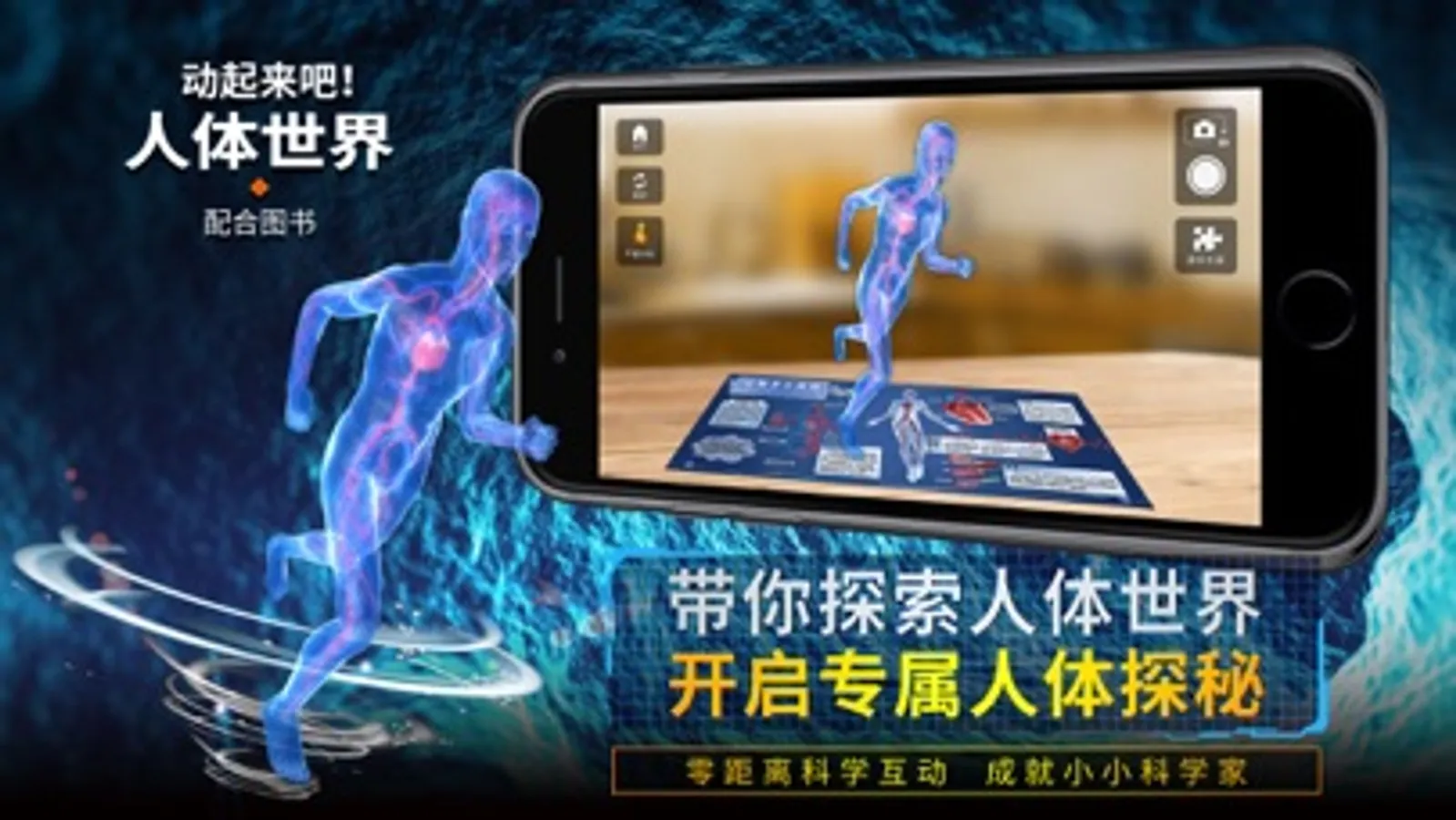 此APP搭配《动起来吧!人体世界》科普图书使用,通过移动设备摄像头识别书里的不同页面,从而在纸面上出现真实的3D模型: 你就可以亲自操纵人体骨骼行走,近距离观察消化过程,了解各种细胞的形态,观察呼吸和血液流动的整个过程,同时还有更多趣味互动等你体验!