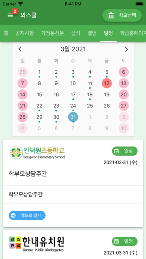 * 일정 : 학교 행사등의 일정을 확인할 수 있습니다.
