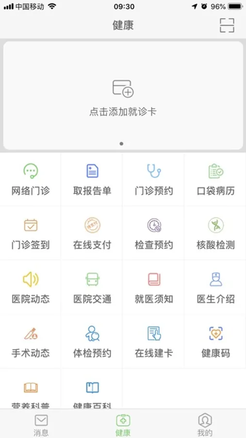 温医一院手机APP, 自动判断登录者身份,患者身份登录可实现发热咨询、云医院、手机预约、取报告单、医院介绍、医生介绍、疾病百科、用药宝典、急救手册、疫苗接种等功能。员工身份登录除以上功能外,另有工作模块(包括通讯录、顺风车、差旅费标准、医患沟通、报修、食堂点餐、住院病历本、中草药核对、午休室申请/管理等功能)