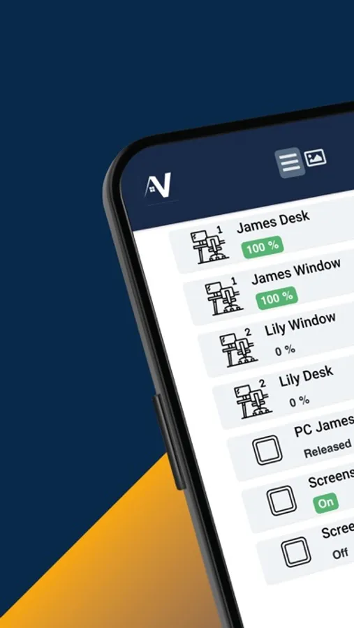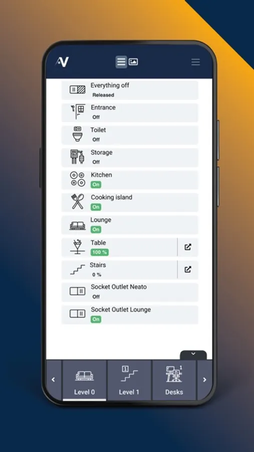 - consult and adjust the status of your lighting, shutters, thermostats, etc.
