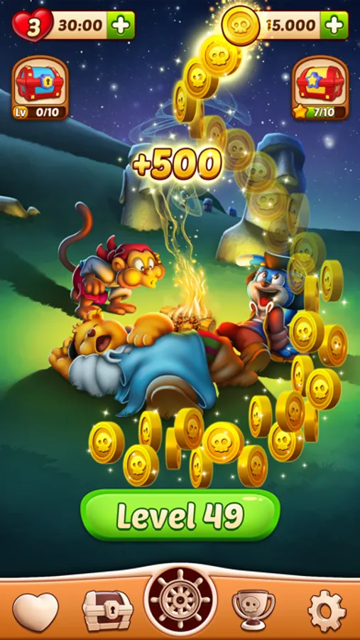 • Discover and open the mysterious Pirate Treasure Chests: gather stars, crush levels and claim your treasure reward!