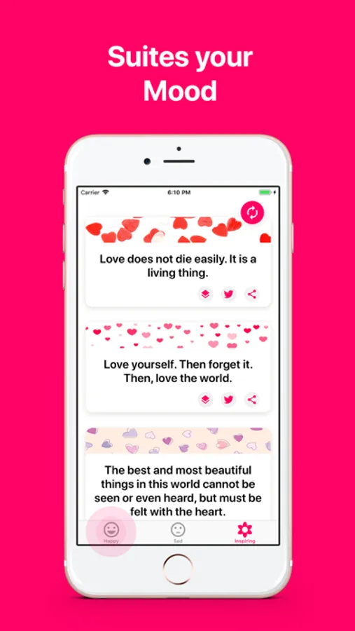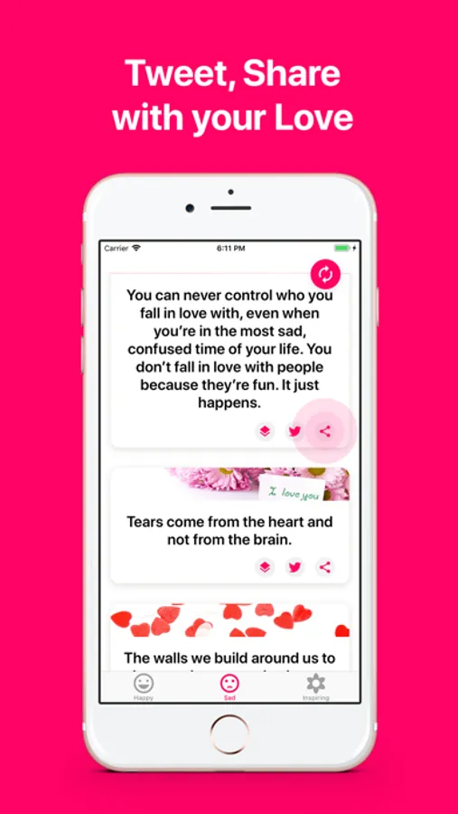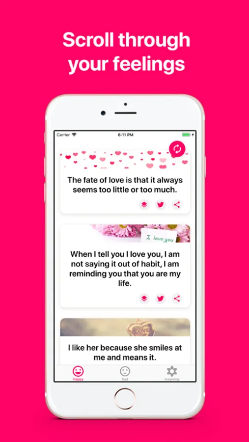 You can scroll through many quotes easily, effortlessly and you will be able to tweet and share via your favorite apps instantly.