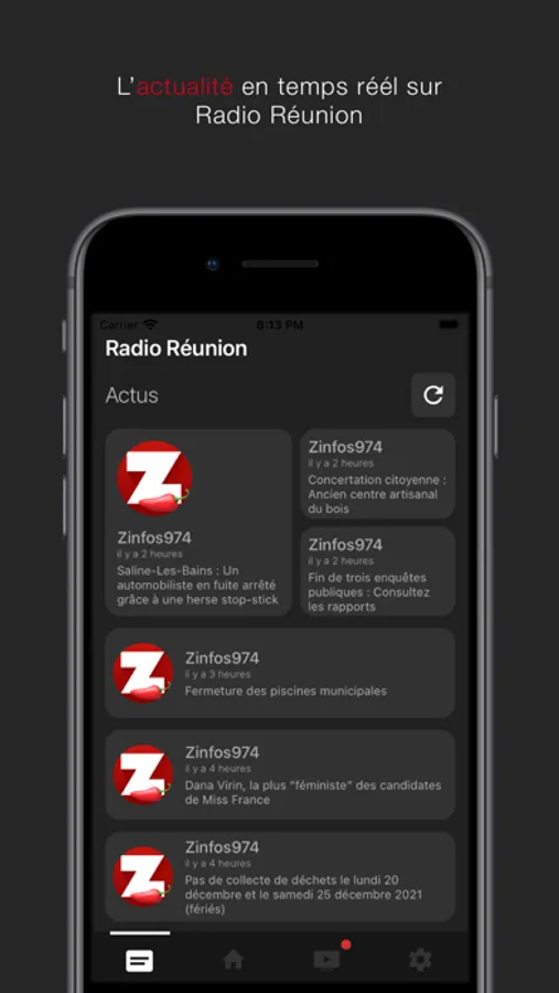 Grace a la nouvelle fonctionnalité actualité, rester informer en temps réel des informations de la Réunion.