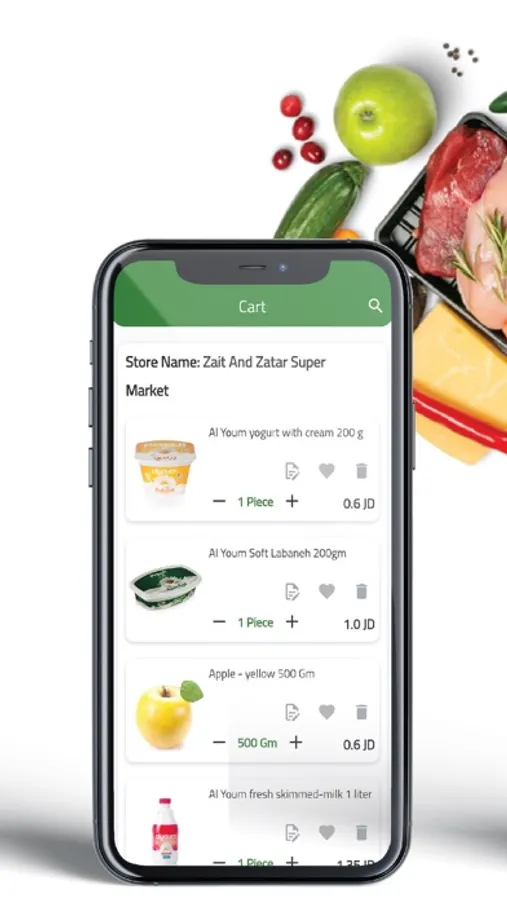 As you register in Zait & Zatar's Mobile App, you’ll be able to add items & quantities of groceries that you want to buy, to the basket, with the ability to edit your order at anytime, and also choose delivery time when checking out.