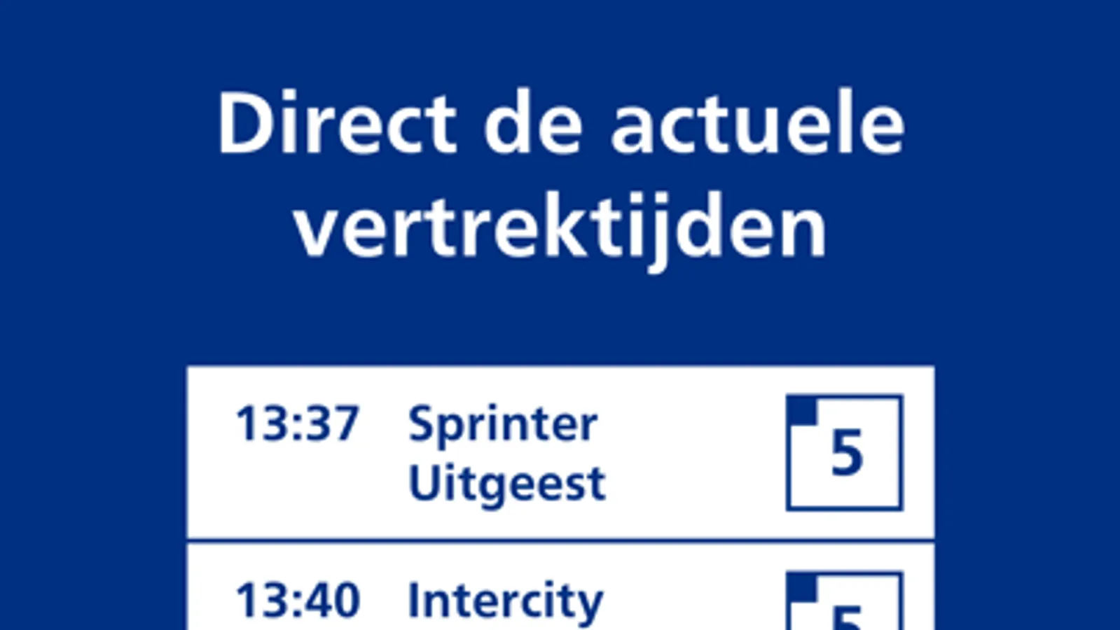 - de eerstvolgende twee vertrekkende treinen van het betreffende spoor;