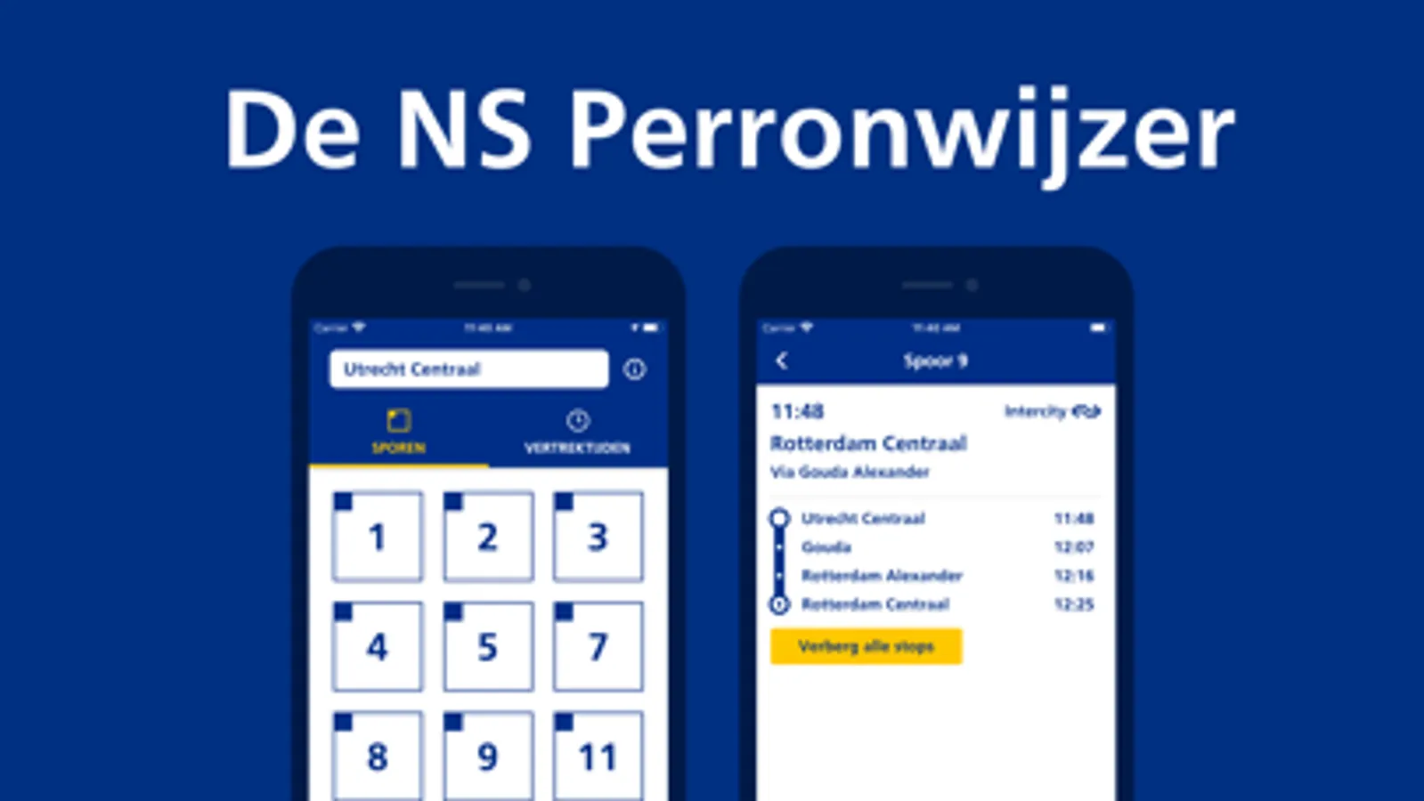 Op het gebruik van de NS Perronwijzer zijn de Gebruiksvoorwaarden NS Perronwijzer-app (zie ns.nl/voorwaarden) van toepassing. Door gebruik te maken van de app ga je hiermee akkoord.