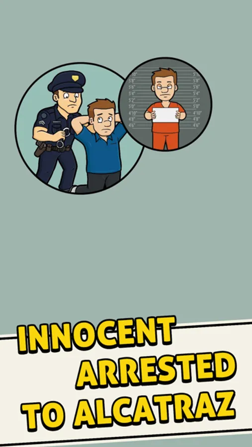 Escape Alcatraz is an addictive word game to help Peter break out from Alcatraz. Peter was sentenced to life imprisonment for murdering his wife. In fact, he didn't do anything to hurt his wife. He is innocent, you need to help him survive and break the prison. In prison, he met with a lot of difficulties, such as tortured by cellmate's purr, molested by gay prisoners, survive during gangs fight, etc. There are also good things for him, e.g. flirting with the pretty doctor.