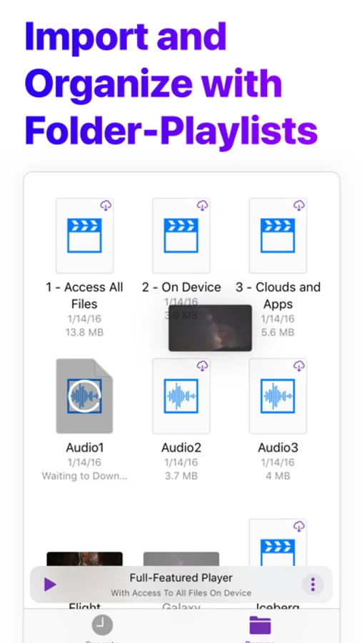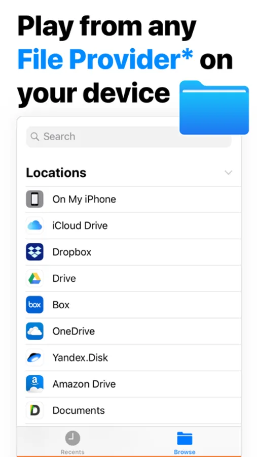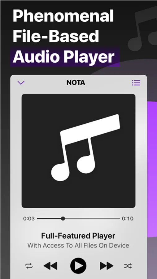 Nota is the first full-featured file-based audio player, which is able to inplace playback from system Files app and its File Providers*. That opens an unique opportunity to access other apps and cloud sources without copying files.
