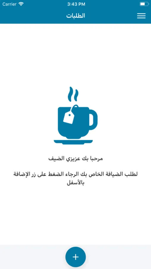 برنامج يسمح للمستخدمين بطلب الضيافة الخاصة بهم دون الإتصال بغرفة الضيافة ودون الحاجة لحظور مقدم الضيافة لغرف الإجتماعات أو المكتب لأخذ الطلبات. بإمكانك طلب الضيافة الخاصة لك عن طريق البرنامج (الشاي - القهوة - الماء) أو طلبات أخرى يوفرها مقدم الضبافة, واختيار الخيارات الإضافية (السكر - الحليب) وعدد الطلبات وسيتم توصيل الطلبات إلى المكتب أو غرفة الإجتماعات.