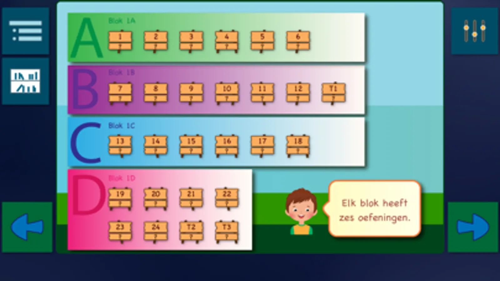 De app bestaat uit 10 digitale werkboekjes, elk met 60 zelfstandige naamwoorden om te oefenen. Uw kind doorloopt zes stappen om elk woord grondig te leren: