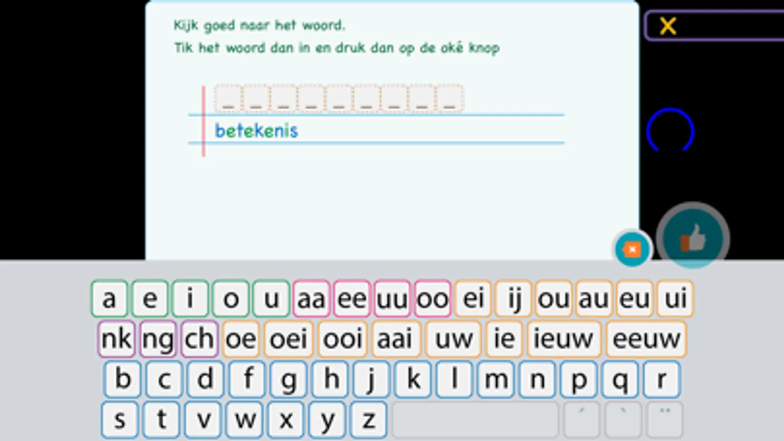 De app maakt gebruik van een speciaal Nederlands klankentoetsenbord, waardoor uw kind op een intuïtieve manier leert hoe woorden zijn opgebouwd.