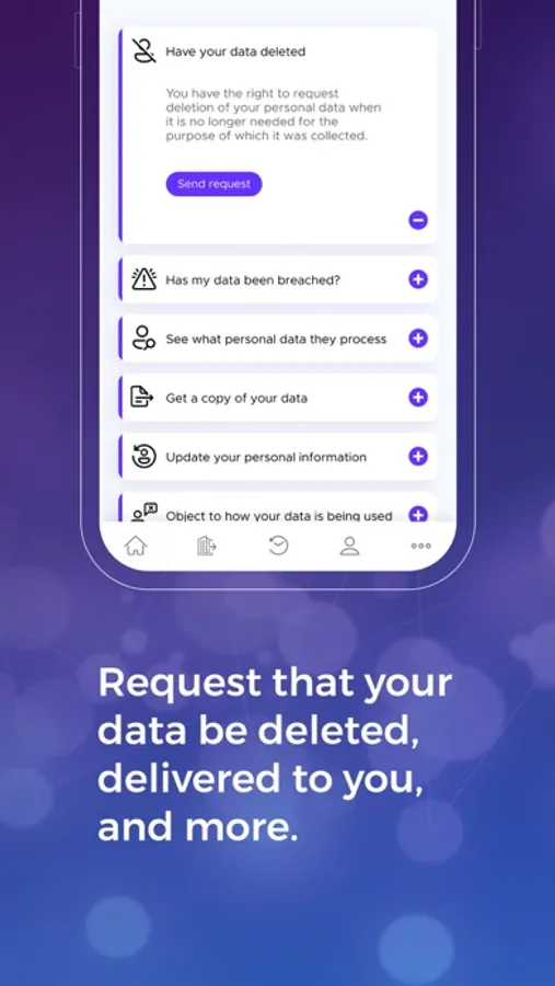 Track and control your data, get alerts for data breaches that may put your personal information at risk, and more. Your data belongs to you, and PrivacyWallet makes it easy and simple to exercise your privacy rights, right from your phone.