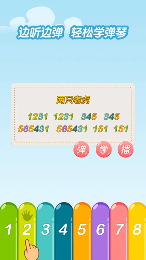 熟练掌握1-8个阿拉伯数字,跟着小节提示进行演奏,变身小小音乐家。