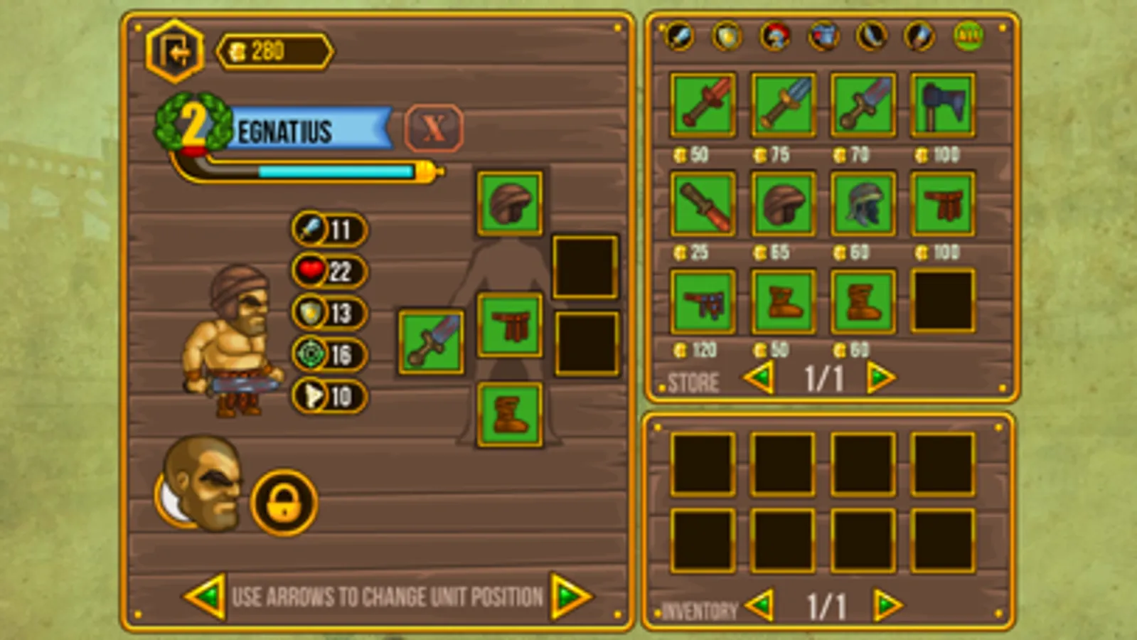 Enter the coliseum and fight against the gladiator houses of other real players. Will you become a legend or fall nameless to the sand of the arena? It's all up to you. Train your gladiators, buy the best weapons and gear and fight! Find your unique team and equipment setup to become the best in the city.