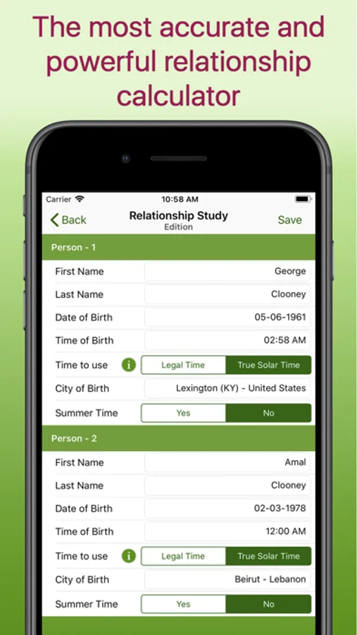 All you need is the date of birth of each, and the app will provide you with a detailed picture of your energies and their exchanges, when you are together.