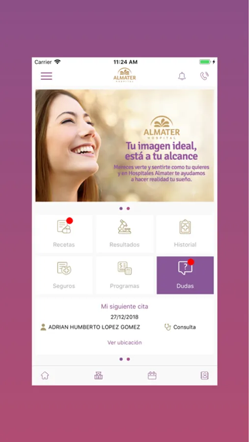 Solicita citas médicas, consulta los resultados de tus estudios y recetas; tramita Tarjeta Familias Almater, encuentra tu médico especialista, asesoría personalizada en seguros de gastos médicos y solucionar dudas sobre lo relacionado con nuestros servicios.