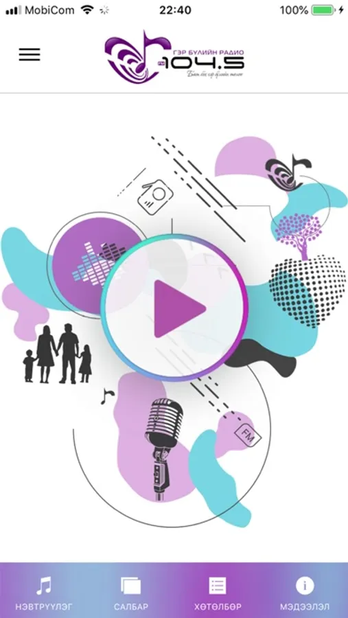 Өнөөдөр Гэр бүлийн радио 104.5 нь зөвхөн нийслэлд бус хөдөө орон нутагт албан ёсны есөн салбараа нээн, тогтвортойгоор ажиллуулж байна. Манай дуу хоолой Дэлхийн эргэн тойронд www.1045.mn цахим хуудсаар эгшиглэж, сонсогч тантай цаг мөч бүхэнд хамт байдаг. Мөн та радиогоо Япон автомашины хүлээн авагчийн 84.5, бусад автомашинд 104.5 долгионоор хүлээн авч сонсох боломжтой. Түүнчлэн Аpp store, play store-оор ухаалаг утастай хүн бүрийн гар утсанд 7 хоног 24 цагийн турш эфирээ зогсолтгүй цацаж байна.