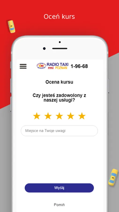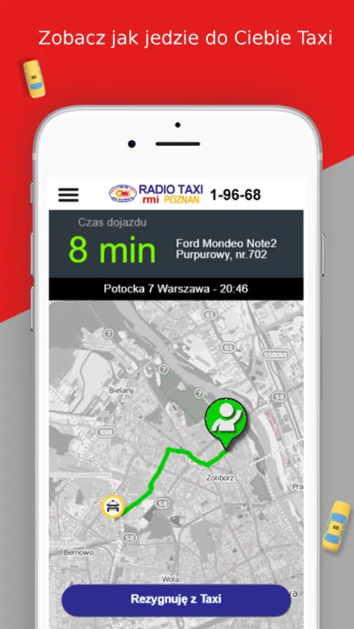 Bezpłatna aplikacja służąca do zamówienia taksówki w korporacji RMI Taxi w Poznaniu. Aplikacja pozwoli na szybkie i wygodne zamówienie taksówki, oszacuje koszt przejazdu i czas oczekiwania, a także powiadomi, gdy taksówka dotrze pod adres zamówienia.