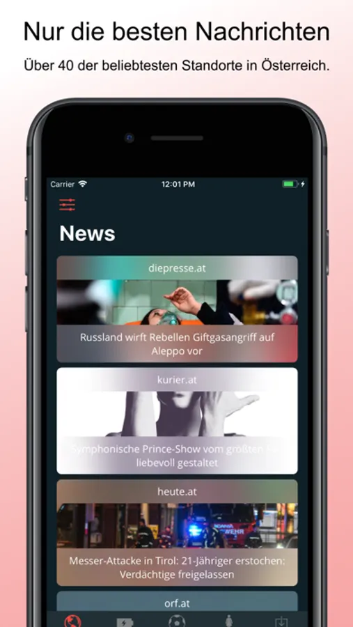 Top news from Austria. More as 40 top sites, every day hot news. You no more miss any new what happened near you, in world, in sport, everywhere.