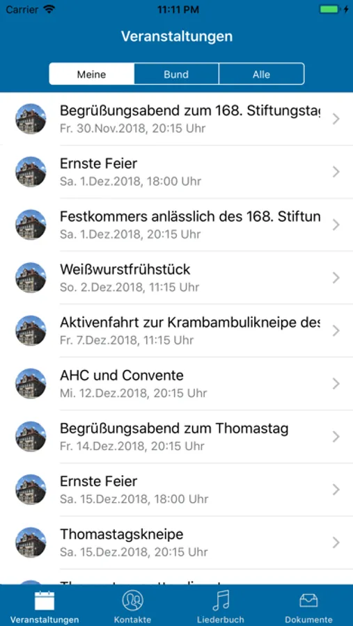 Alle Veranstaltungen aus meinen Verbindungen und aus dem Bund: Immer aktuell in der Vademecum-App!