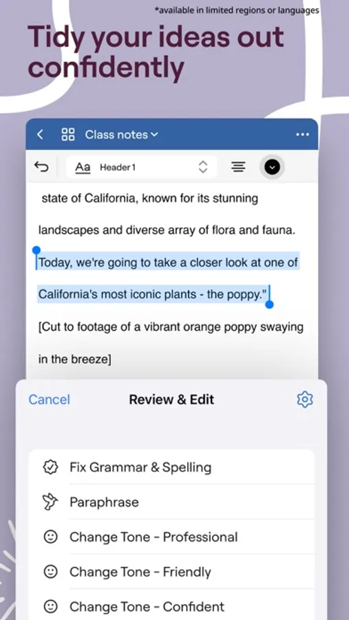 ■ Use AI to summarize, shorten, change the tone of your words, and otherwise perfect your typed text.