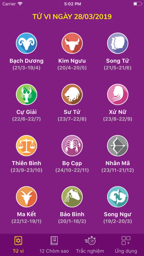 Ứng dụng xem tử vi cung hoàng đạo hàng ngày.