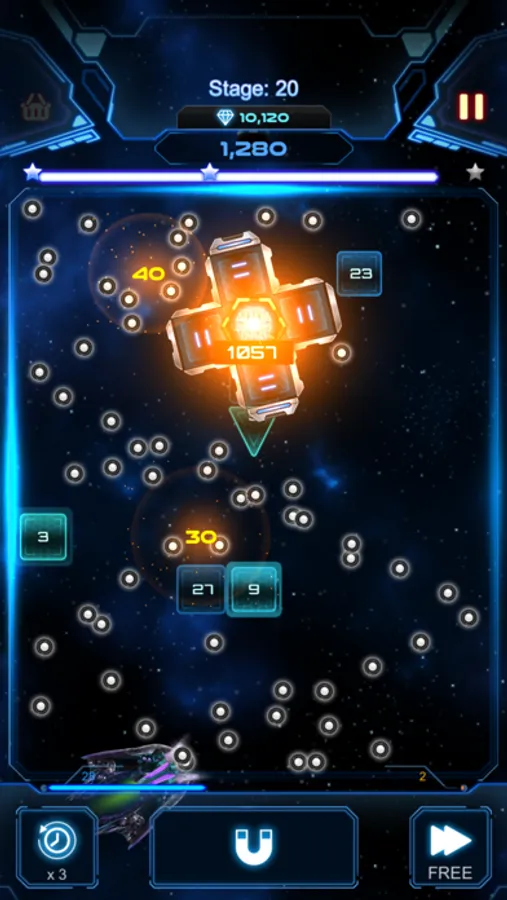 Enjoy a shooting game concept and a strategic brick breaking game in one.