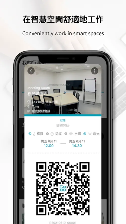 You can self-service in the space, including meeting room or seat use, spaces access, equipment borrowing and return, event participation, purchase of goods, etc. Just scan the QR Code and you can immediately "Go and Work".
