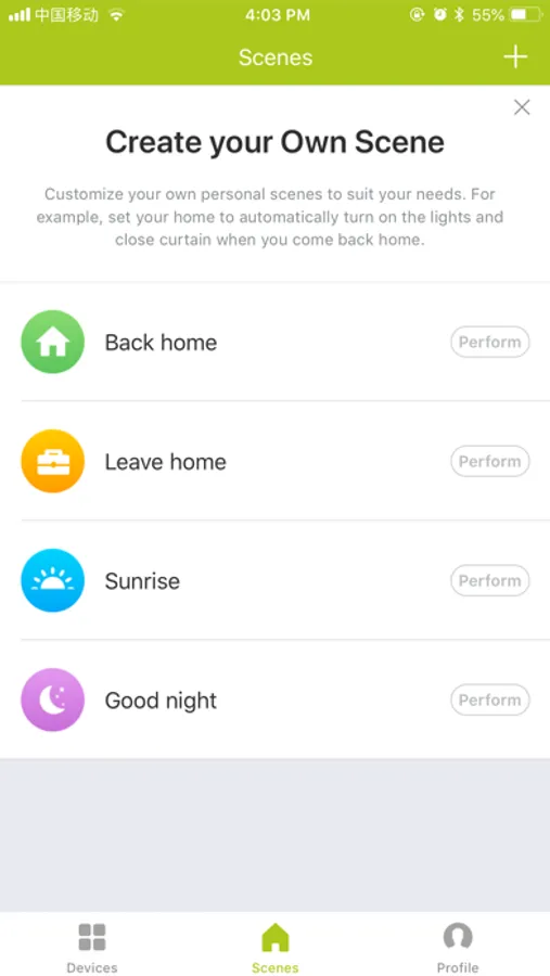 È possibile creare scenari nelle impostazioni del termostato, tra cui accensione e impostazione della temperatura ambiente, livello di umidità, clima, qualità dell'aria, alba / tramonto e dispositivi per controllare il termostato.