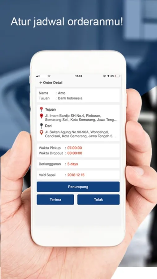 2. Terima Pekerjaan : Terima pekerjaan untuk mendapatkan informasi penumpang yang akan dijemput